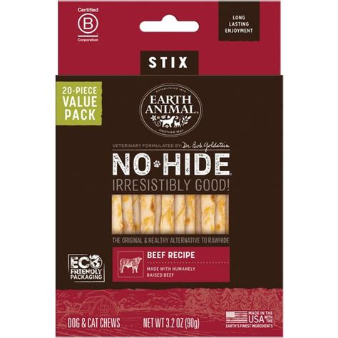 - Great taste: Pets love the taste of Earth Animal No-Hide sticks! The natural ingredients and high-quality proteins make for a delicious chew that your pet will love.